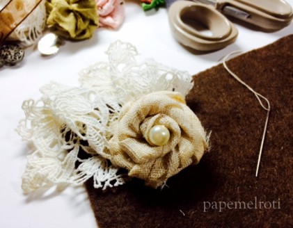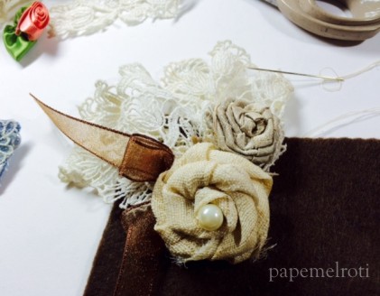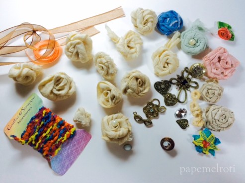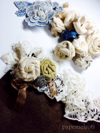 I put some of the flowers and ribbons, laces, and other components together to see how I like it.