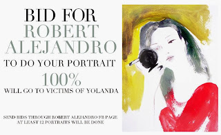 Robert A. Alejandro, Papemelroti's award-winning graphic designer will do portraits for the highest bidders (may be given as gifts as well). At least 12 portraits shall be made. 100% of the revenues will go to victims of Yolanda / Haiyan. Winning bids will have to deposit to a BPI account in Manila. Winning bidders will have to send images (NOT smiling) to Robert Alejandro (through facebook account) as a basis for the portraits.
