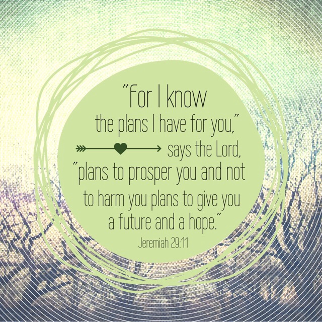 "'For I know the plans I have for you,’ declared the Lord, ‘plans to prosper you and not to harm you, plans to give you hope and a future’” (Jeremiah 29:11).