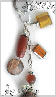 This lariat type necklace has a mix of metal and clear beads made by Papemelroti designer Meldy. A leather cord holds it all together. Here's the full view...