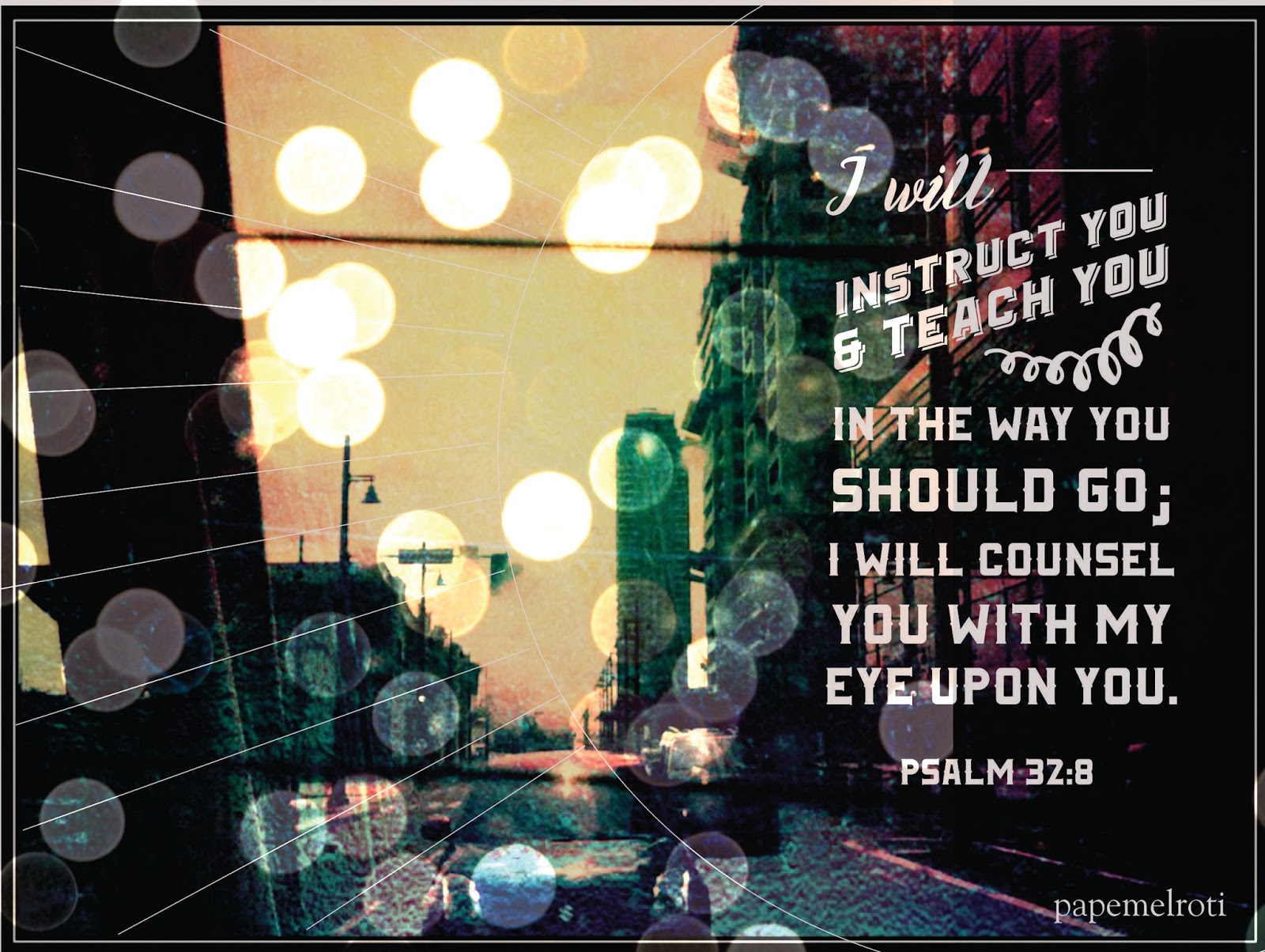 Finally, in all that you do, know and claim God's promises for you! He said that He will instruct us and teach us in the way we should go. If we keep ourselves free from the love of money, power, fame, we will not crowd out the voice of God speaking to our hearts. Isn't it exciting that the Maker of the universe wants to guide us in the way we should go?