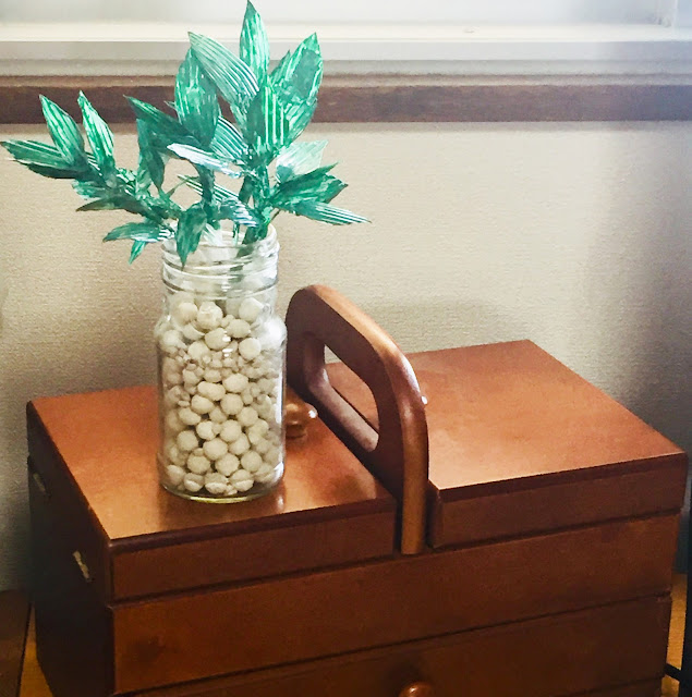 13. Once dry, put it all together. Find a vase or in my case, a repurposed glass bottle (which used to hold olives).