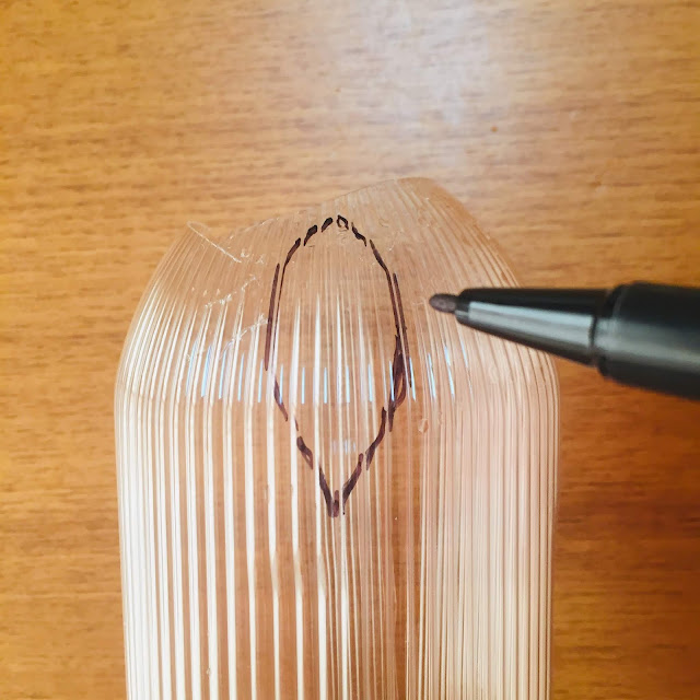 5. Draw leaf shapes on to the bottle using your marker pen. You may need to make a pattern underneath if you want them to be the exact size.
