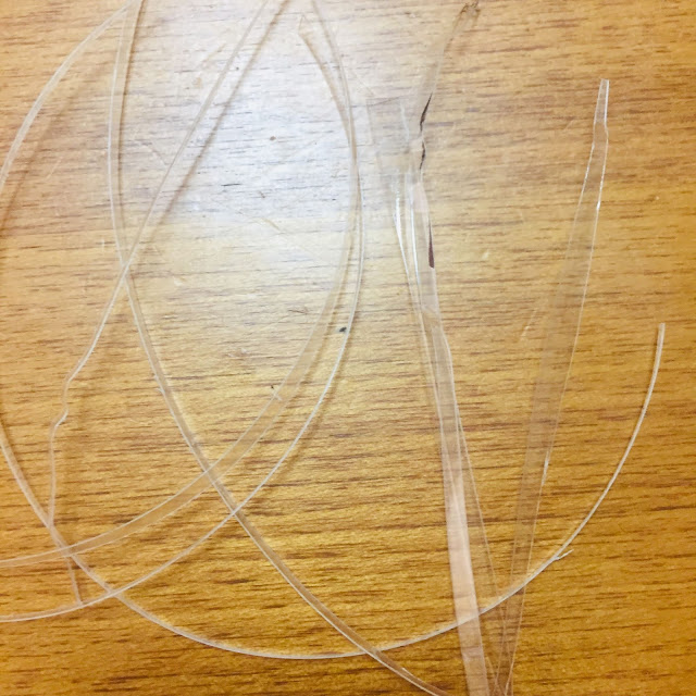 7. Cut little strips to make into the stem. I used the ridges of the bottle as my guide.