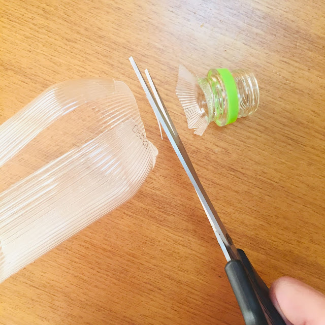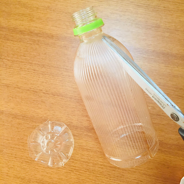 3. Cutaway the bottom portion of the plastic bottle. Cut across (turning it into a curved sheet) to make it easier to work with.