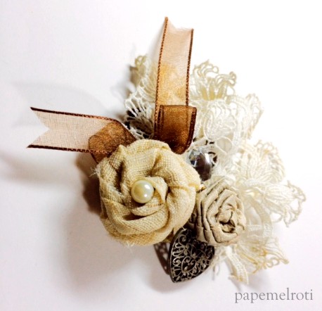 I put some of the flowers and ribbons, laces, and other components together to see how I like it.
