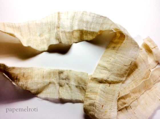 Here’s the first step. To make the flowers, just cut strips about 1” to 2” wide depending on the flowers you want to make. This will take some practice, but the more flowers you make, the better, because then you will have a lot to choose from when designing your brooch.