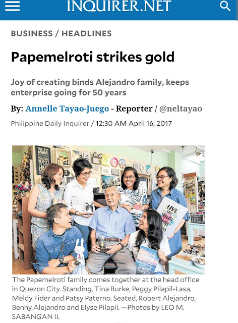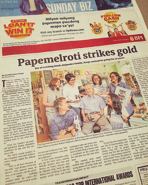 Check out our feature "Papemelroti Strikes Gold" on the Easter Sunday / April 16, 2017 business section of the Inquirer. Also available online! Thank you for the Easter blessing, @inquirerdotnet!