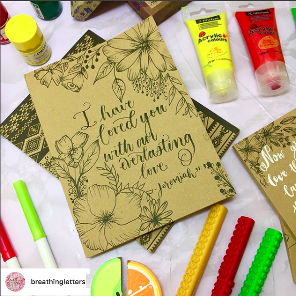 @breathingletters has great skill in sketching! Here she generously shares what materials she uses - Unipin 0.6, Pentel Fude Touch, Zig Cocoiro, Sakura glaze white and Daiso brushpen. She also sells her work online.