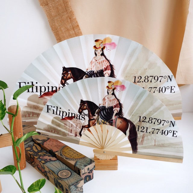 This original papemelroti filipiniana-themed foldable hand fan is perfect for keeping cool anywhere, anytime. Great for your own use or to give it as a gift.