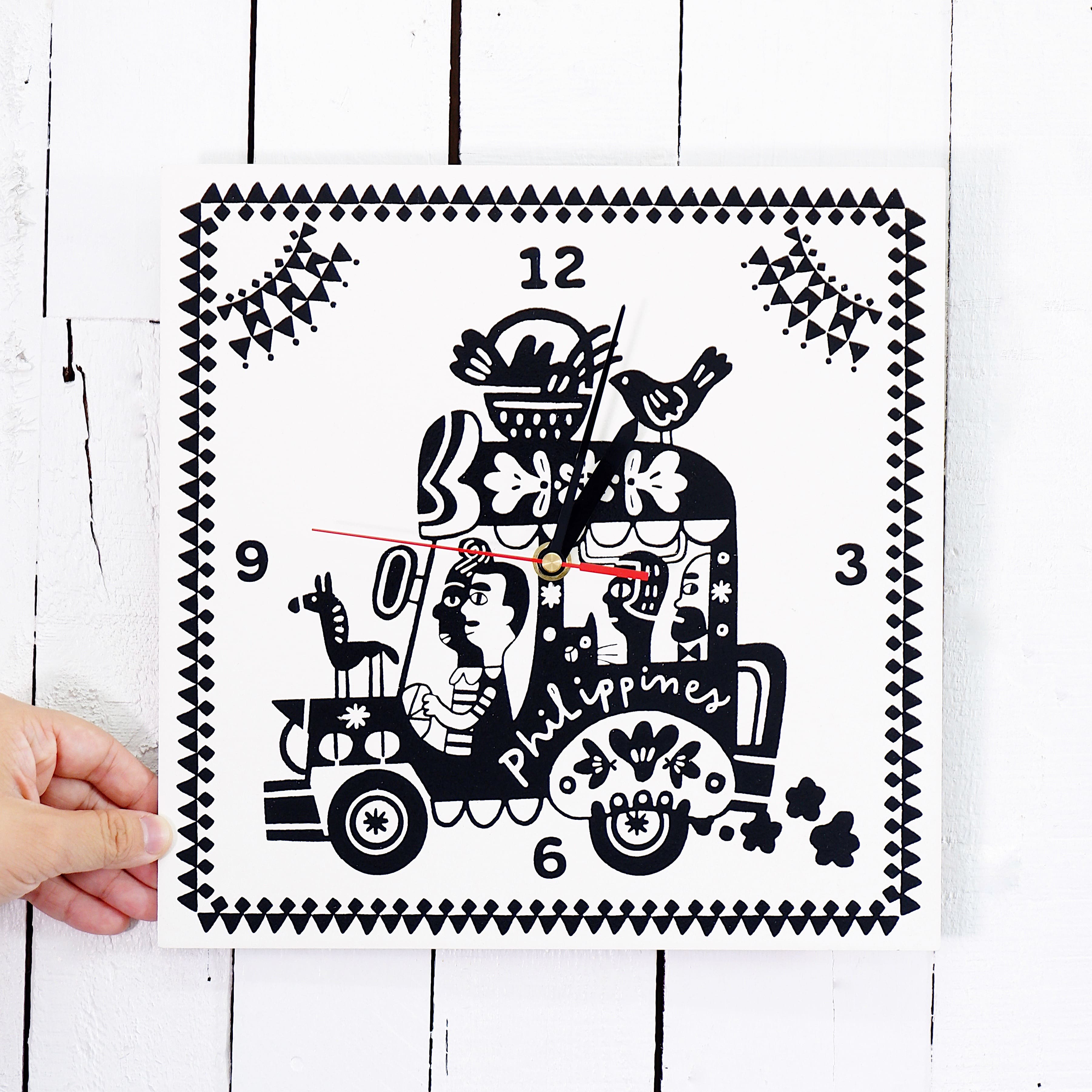 Keep track of the time with this inspirational papemelroti wall clock with an original illustration of the popular Philippine jeepney. Decorate your own home or give it as a gift.