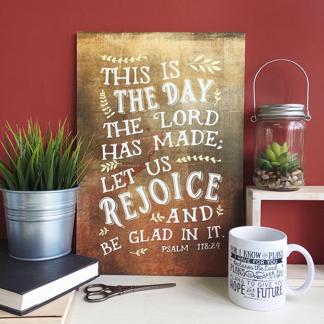 Hang something on your wall to inspire you! This Christian themed papemelroti decoposter features a Bible verse from Psalm 118:24, "This is the day the Lord has made; Let us rejoice and be glad in it." Great for your own home or to give as a gift.