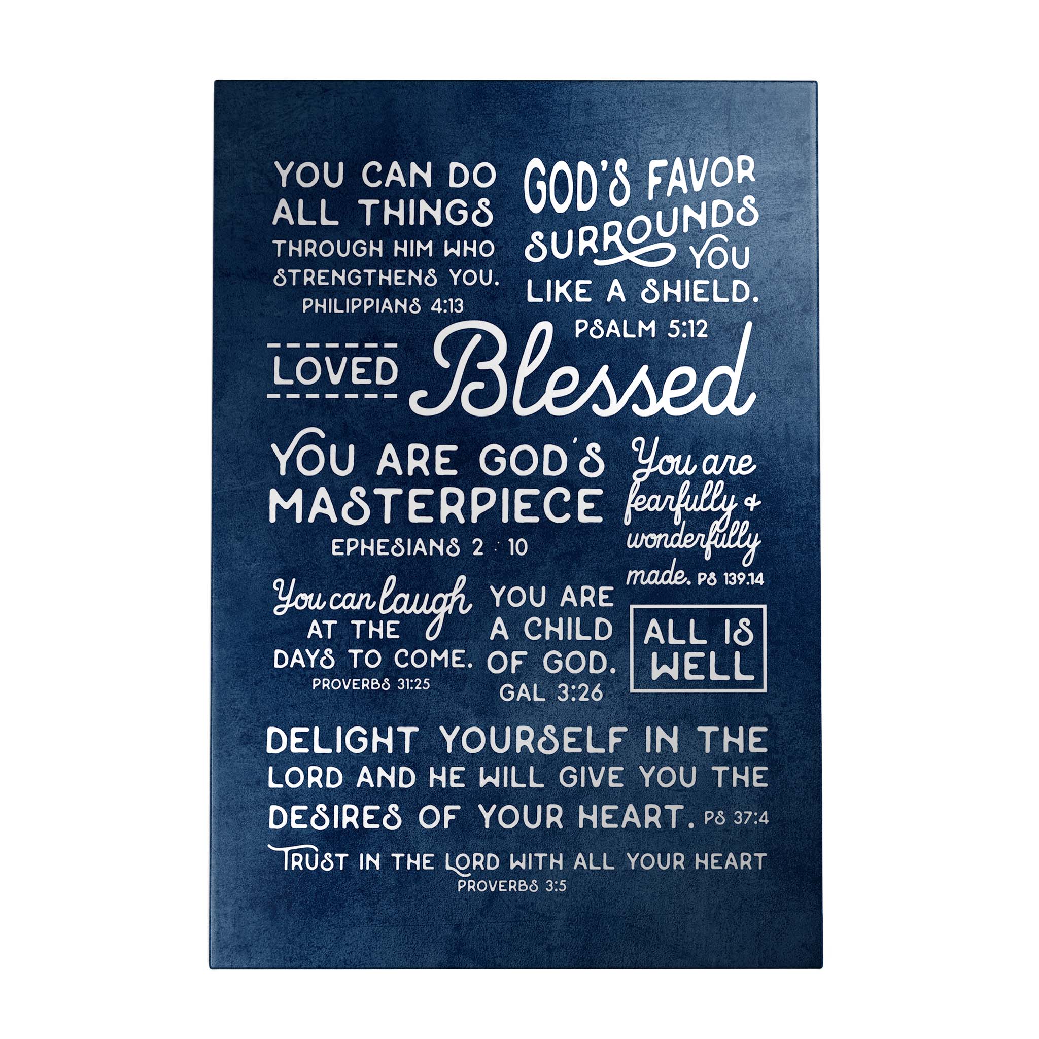 Hang something on your wall to inspire you! This Christian-themed papemelroti decoposter features a collection of inspirational Bible verses like, "You can do all things through Him who strengthens you." "God's favor surrounds you like a shield." "You are God's masterpiece." "You are fearfully and wonderfully made." "You can laugh at the days to come." " You are a child of God." " Delight yourself in the Lord and He will give you the desires of your heart. and "Trust in the Lord with all your heart." Great for your own home or to give as a gift.