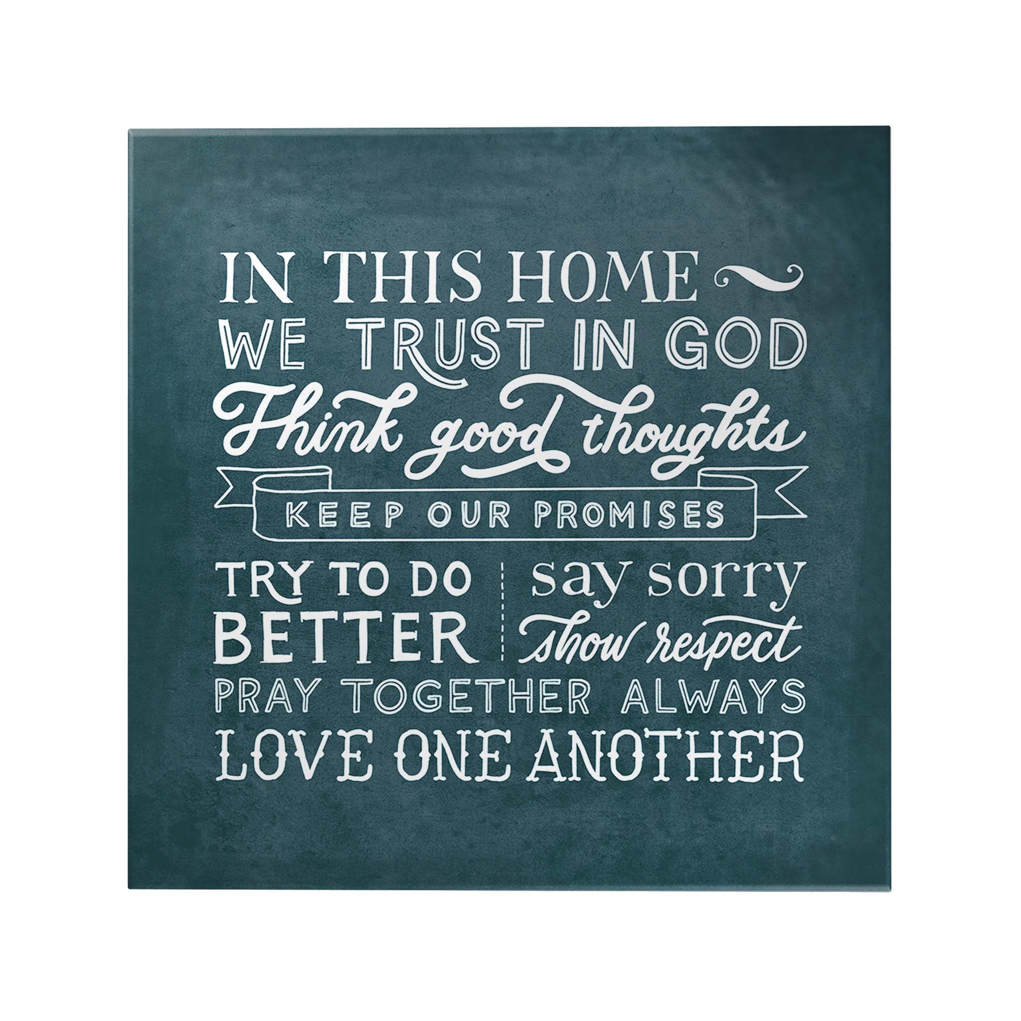 Hang something on your wall to inspire you! This original papemelroti decoposter features an inspirational message, "In this home, we trust in God. Think happy thoughts. Keep our promises. Try to do better. Say sorry. Show respect. Pray together always. Love one another."