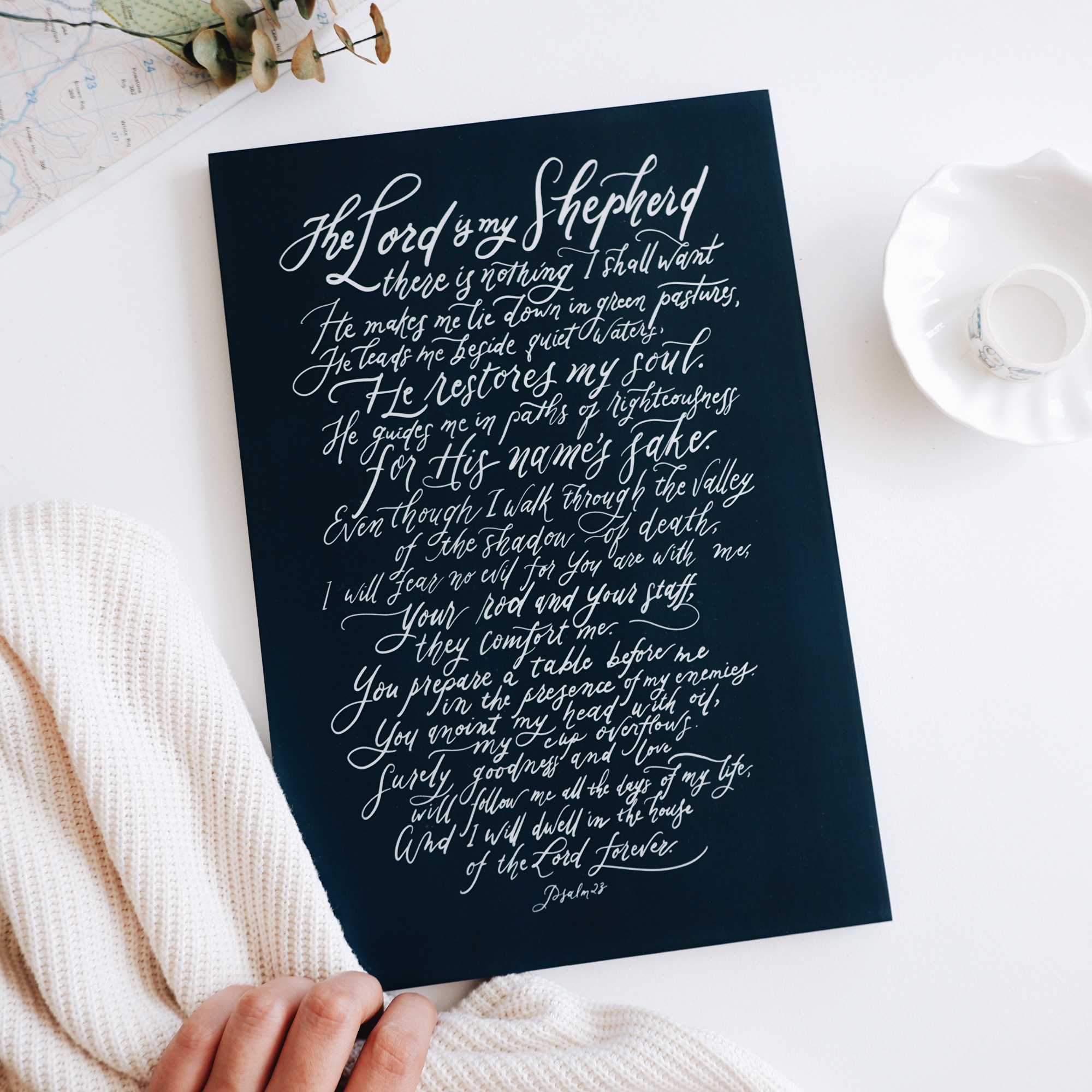 Hang something on your wall to inspire you! This Christian-themed papemelroti decoposter features a Bible verse from Psalm 23, "The Lord is my shepherd there is nothing I shall want He makes me lie down in green pastures He leads me beside quiet waters. He restores my soul. He guides me in paths of righteousness for His name's sake. Even though I walk through the valley of shadow of death, I will fear no evil for You are with me, Your rod and your staff, they comfort me. You prepare a table before me in the presence of my enemies. You anoint my head with oil, my cup overflows. Surely goodness and love will follow me all the days of my life, and I will dwell in the house of the Lord forever." Great for your own home or to give as a gift.