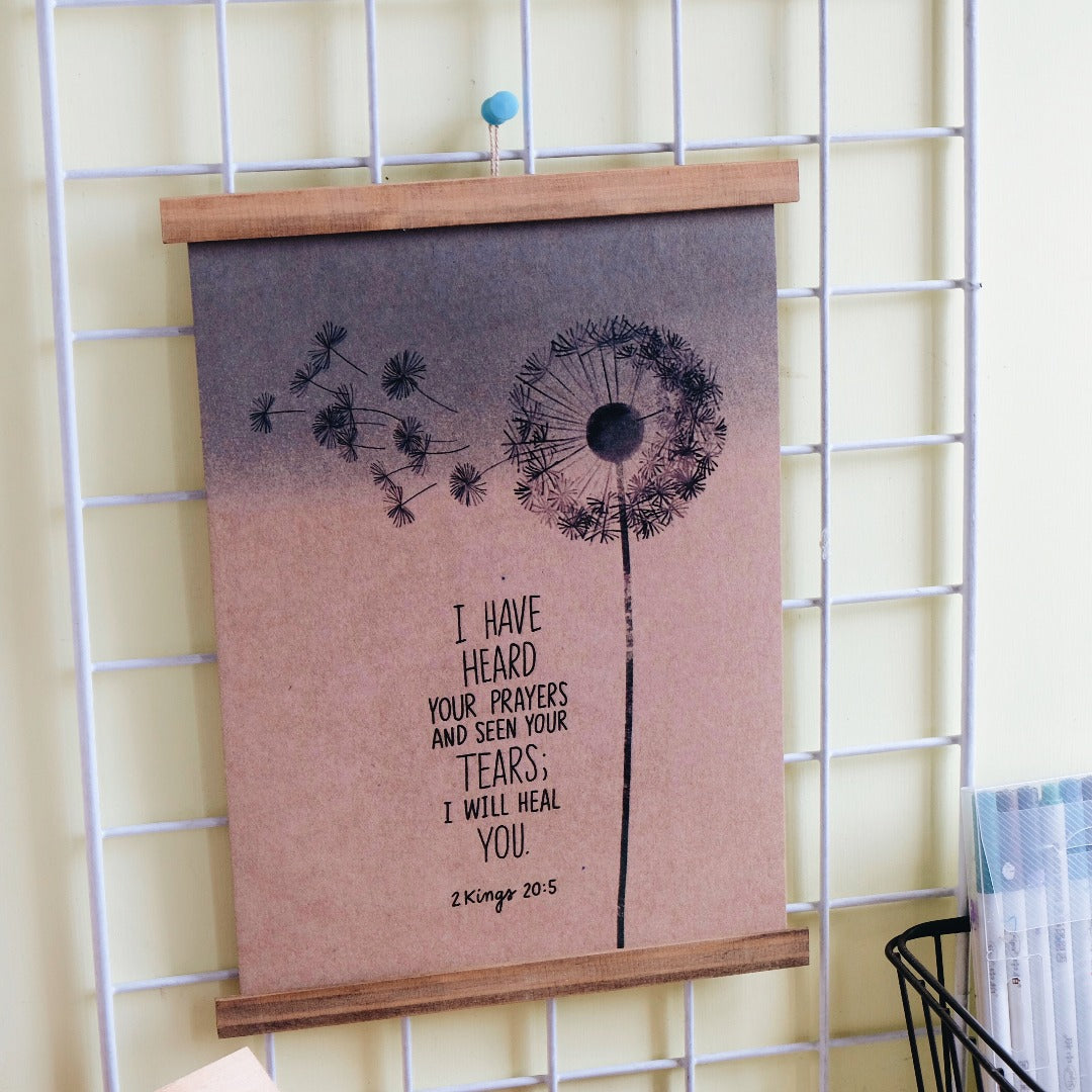 Hang something on your wall to inspire you. This papemelroti scroll poster features the inspirational message from 2 Kings 20:5, "I have heard your prayers and seen your tears; I will heal you." Great for your own home or to give as a gift.
