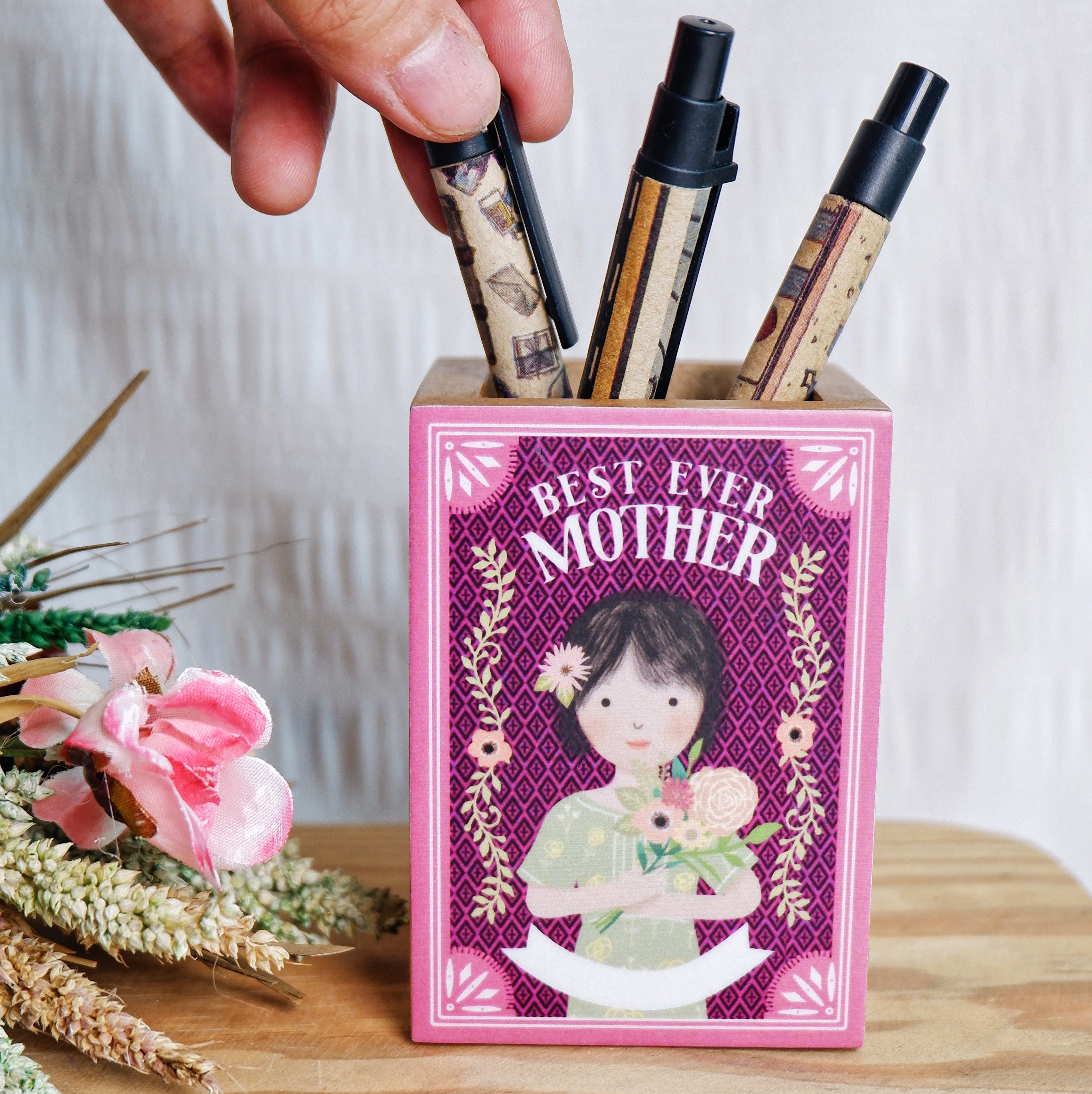 Tidy up your desk with this original papemelroti wooden penholder. Ideal for organizing pencils, pens, rulers, and much more. Great to use at home or at the office.